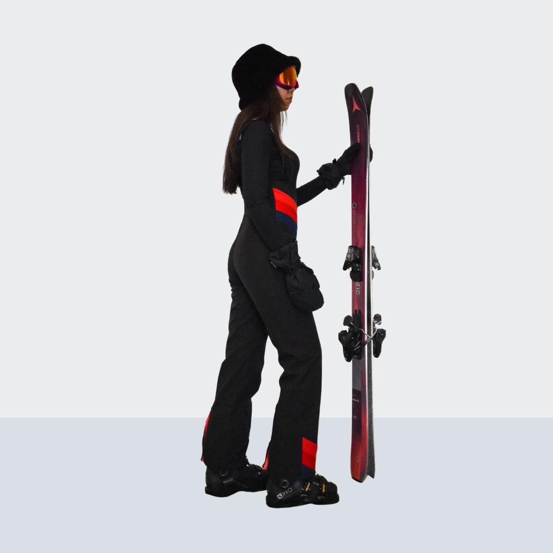 With bold chevron lines constructed to highlight your silhouette, water-resistant stretch fabric, and breathable warmth, it keeps you confident from the first run to après-ski.